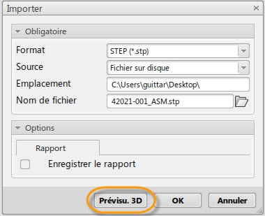 The first 2 behaviors are just related to the visual style of the preview. I choose my step file on the desktop and click on 3D preview. Then I have 2 results :
