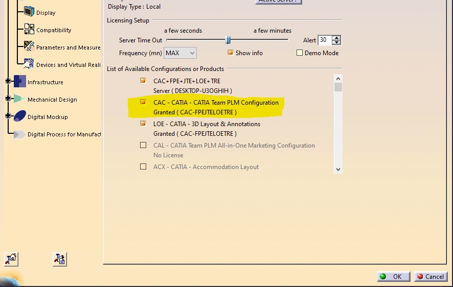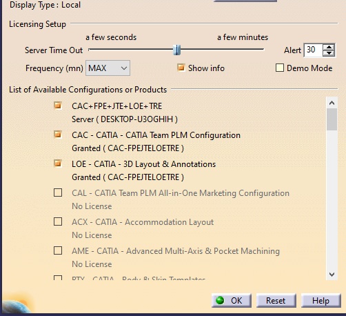 I have an issue with the License Manager of CATIA V5. I have CATEE package installed at my end. I have selected the following set of License under Tools > Options > General > Licensing. ( Highlighted in Yellow)