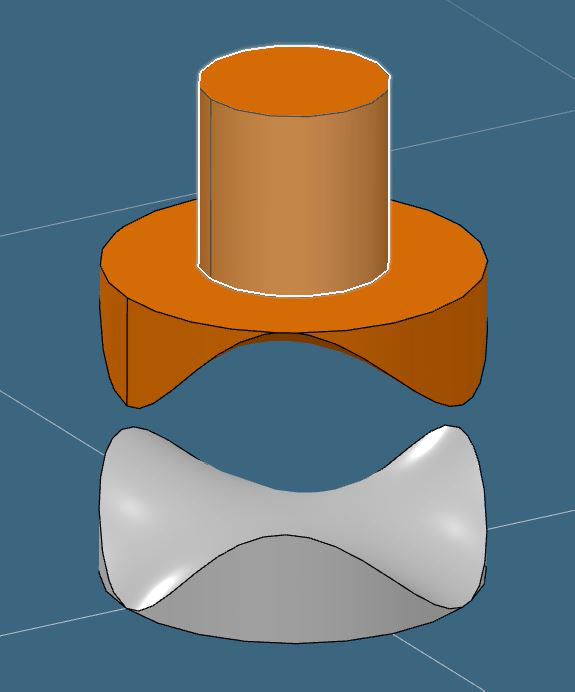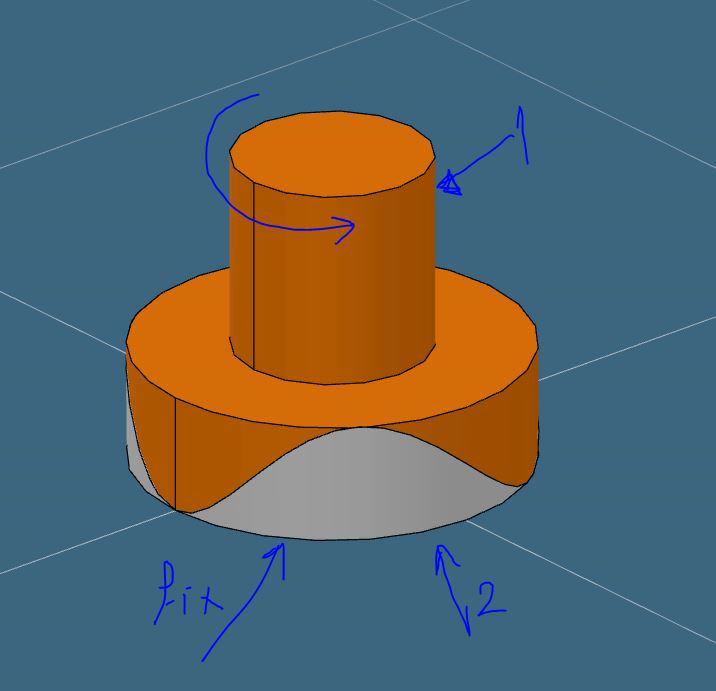 part 2 is fixed and part 1 is rotating over part 2 and slide up and down due to the sin wave shape