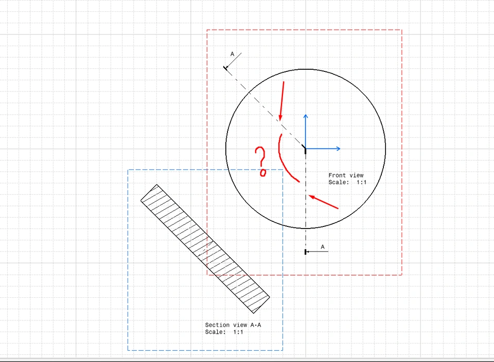 After taking a section view, when I try to give the angle value vs dimension, I cannot get a reference from the dashed line. Is there a setting or method that I can open while dimensioning these lines? I cannot click on the dashed lines by pressing the Dimension command.