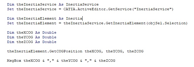 I am trying to write a VBA script for V6 to export the CofG co-ordinates of the selected part/product to a text file.