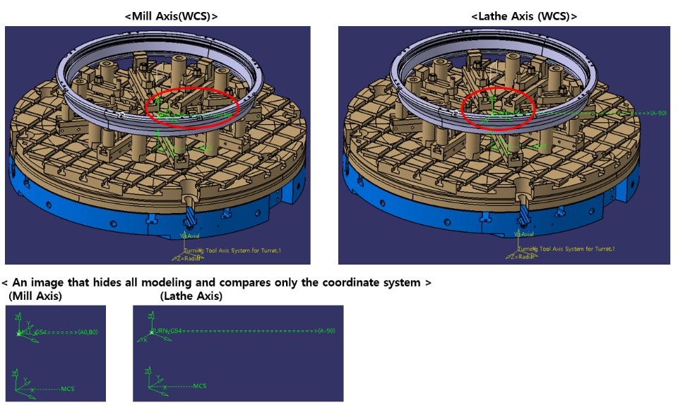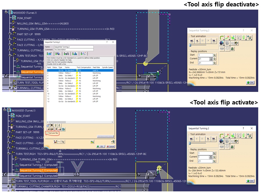 2. If the current tool axis reversal is activated, the tool is flipped up and down as shown in the image. What settings do I need to change the rotation to left/right?