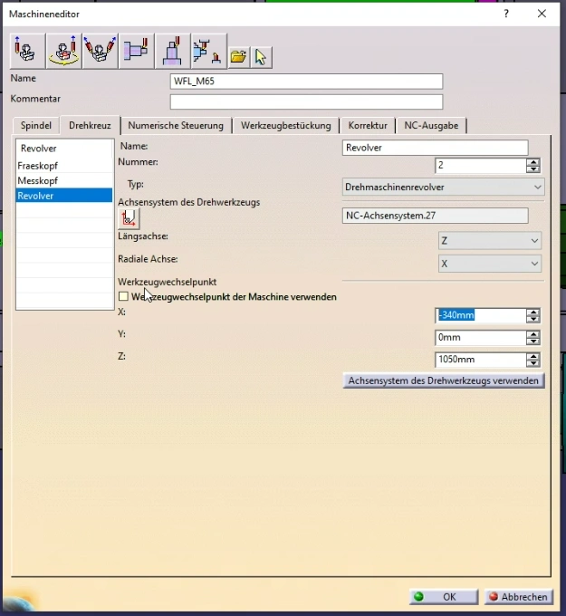 I want ot have the capability to change the Tool change position in the CAM Process. For example the WFL machine have a variable tool change position.