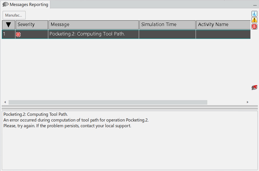 I'm getting back up and running with shop floor after some time away and I'm running into a problem. I can compute my toolpaths, but then when I go to simulate I get the attached message that an error occurred during computation of toolpath.