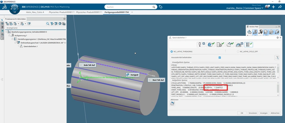 how is the depth calculated in the thread turning MO? If I select an ISO thread, I cannot understand the depth. And why does the thread depth change if the turning insert has a radius?