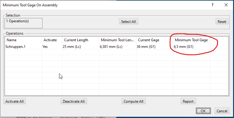 I would like to include the parameter "Minimum Tool Gage" in the APT. Can someone tell me what the MFG parameter is called? I can't find it in the documentation.
