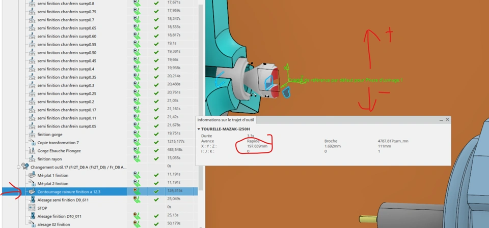 I have the same pb with another opération in the process : as you can see on the picture below, the coordinate is "+197.839" but the tool is positionned in "-197.839"...