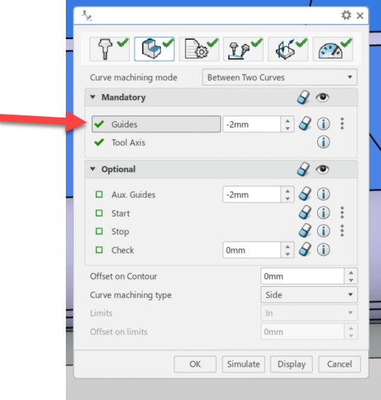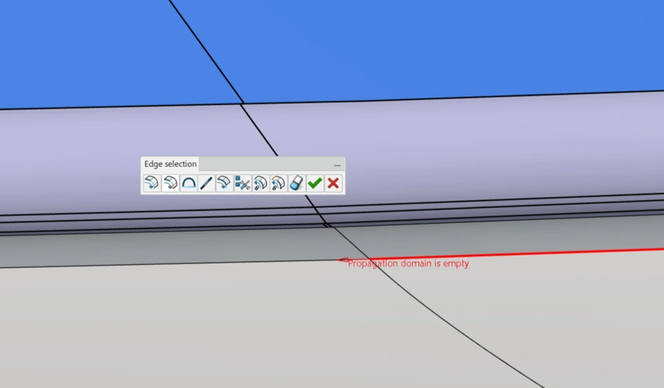 When selecting the guide curve for a multi-axis curve toolpath on some of our parts, the following message occurs: "Propagation domain is empty". This prevents us from auto-chaining the guide curve, and forces us to manually select it. This is problematic for us as many of our parts have extreme curvatures and fragmented lines that are broken up, making the selection process prone to error. What is the meaning of this message and how do we correct it?
