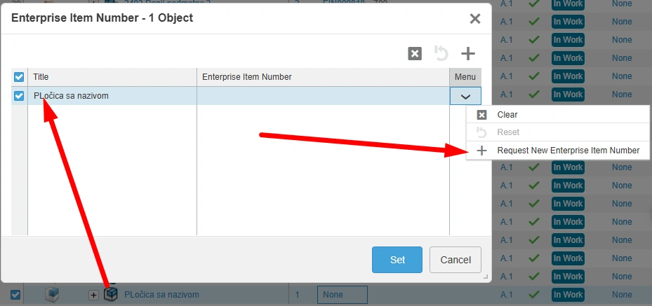 Why is the "Request new Enterprise Item number" missing when I try to set new EIN for my Manufacturing Item?