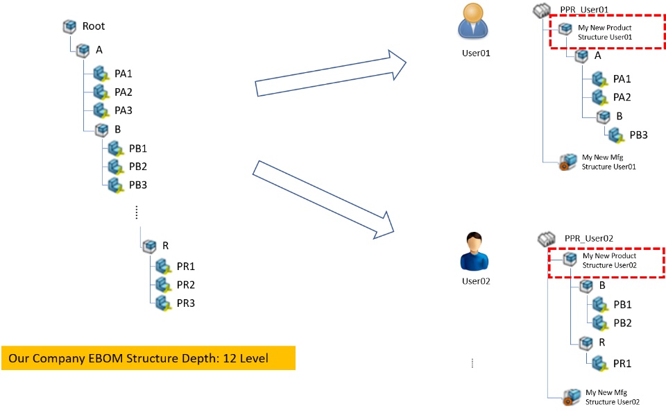 There is a multi-level Product Structure (EBOM) as shown(12level).