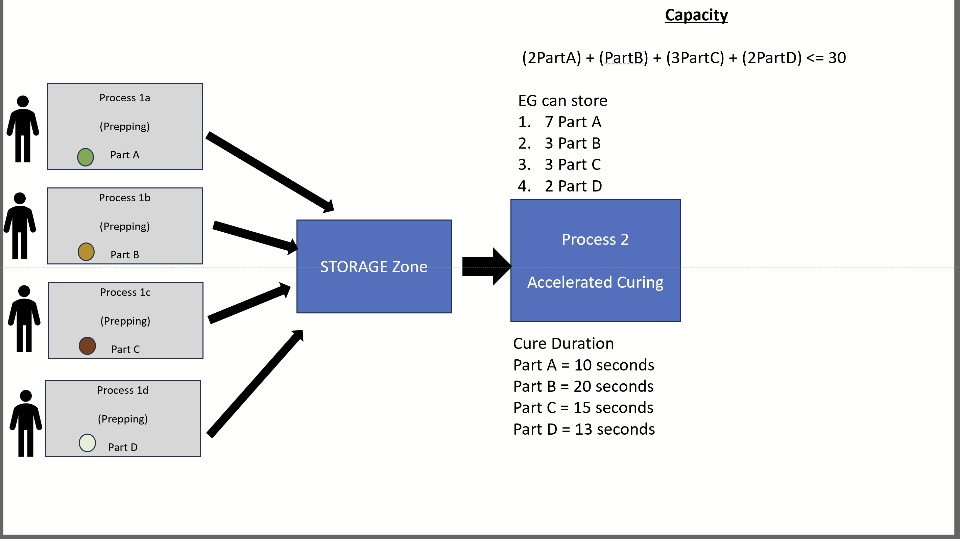 2. Curing of many parts can be run in parallel. I.e We can insert new Parts into the Oven whilst others are processing, assuming there is capacity.