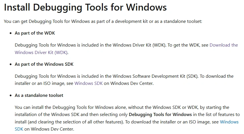 I have tried Installing Debugging Tools for Windows from Microsoft's page below using "As part of the WDK" and "As part of the Windows SDK" but still do not see the ADPlus.exe file in the Debuggers\\x64 folder location.