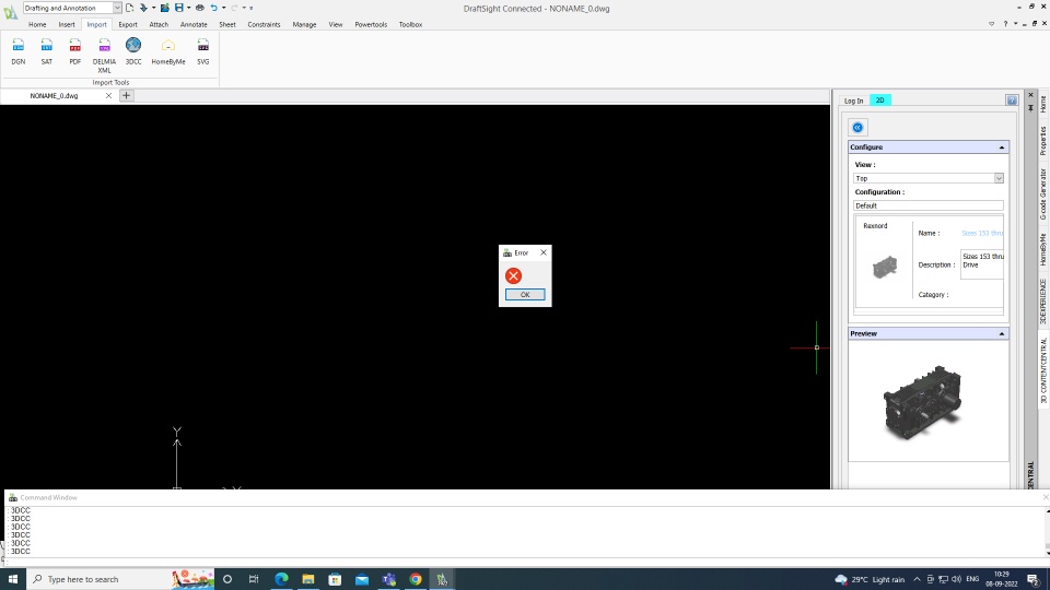 On Draging the part from List, it is showing error.