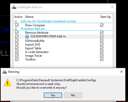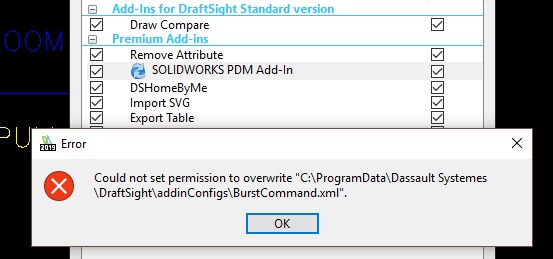We just upgraded and our users saw there is an addin for SW PDM (which we use). When they check the box they get warning that BurstCommand.xml is read only - overwrite anyway? if they click yes - get error stating could not set permissions to overwrite file. Anyway to get users access to the SW PDM Addin?