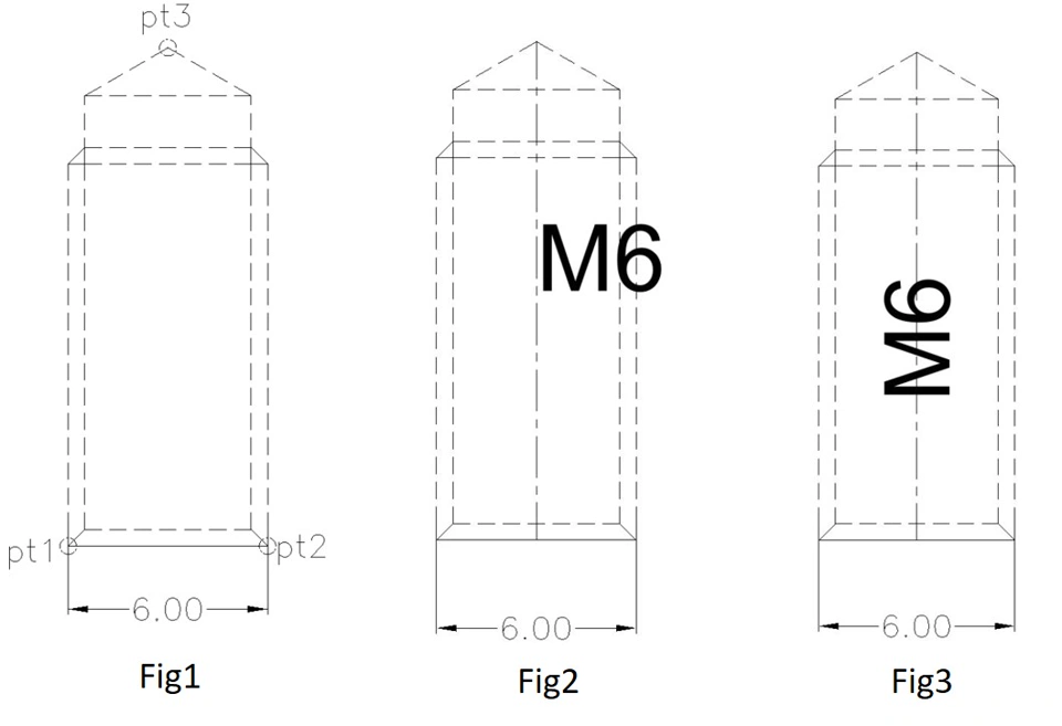This is a code that lets me add center line between two points together with the text, the text input is a measurement between pt1 and pt2 with a prefix "M", this is almost perfect to what I need. What I need to improve is to place the text aligned with the center line (as seen in Fig3) however the text is place perpendicularly to the center line (as seen in Fig2), if the drawing is horizontal the text is place somewhere else. Fig1 is the original condition of the drawing generated from 3D. Is there a way I can change the code to make the text always aligned to the created center line similar to Fig3 and I also want to use the Text Style for the size of the text. Thank you in advance everyone.