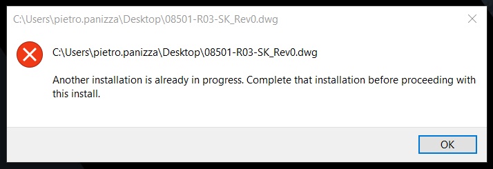 when I go to open a drawing saved on my desktop, it displays the following error message (in picture)