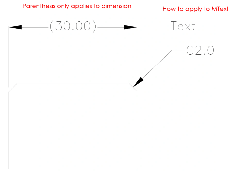 I’ve created a command string to add parentheses to dimensions, and it works. However, I need help applying the same condition to MText. The image shows it works for linear dimensions but not for MText. Is there a way to do this?