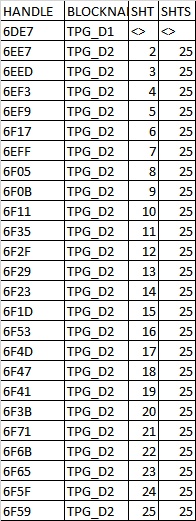 | HANDLE | BLOCKNAME | SHT | SHTS |