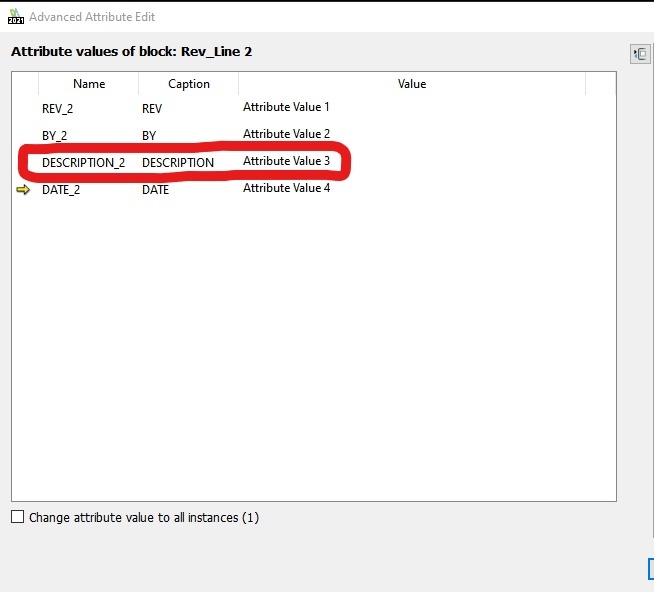 With DraftSight open, a document opened, in sheet view, and looking at a "revision line" block, my code looks like the following:
