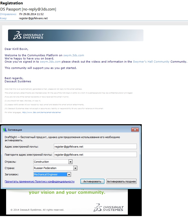 I do get messages from DS Passport [no-reply@3ds.com] about my registration, but I don’t get any with free registration key - whow is it possible?