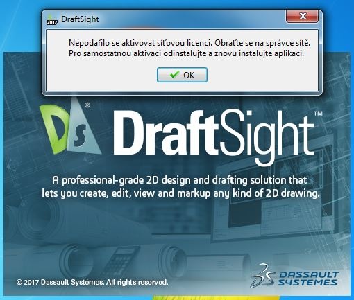 The server is activated and running. But when I try to launch DraftSight there is error message - cannot get license.