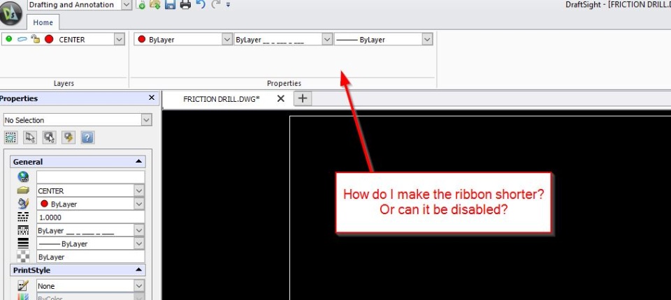 I typically just type commands, I cant stand trying to find button especially when they change the interface so often. So I setup my ribbon to only have the layer tools but I cant figure out how to make the ribbon less tall than the default. Any ideas? Is there a way to just turn the ribbon off and have a toolbar like the older style?