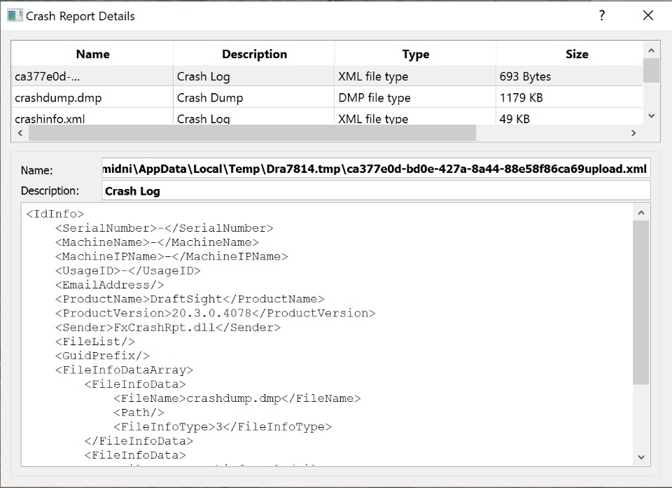 Recently purchased Draftsight standard edition, was working fine during trial period and a couple of days after purchasing the license but all of a sudden it crashes on launch and shows a message "cannot send crash report".
