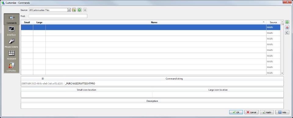 When I opened the table to create a new command I found that there are many repeated lines with command strings relating to purchasing DraftSight, Activating DraftSight and Release Notes, they are repeated time after time.