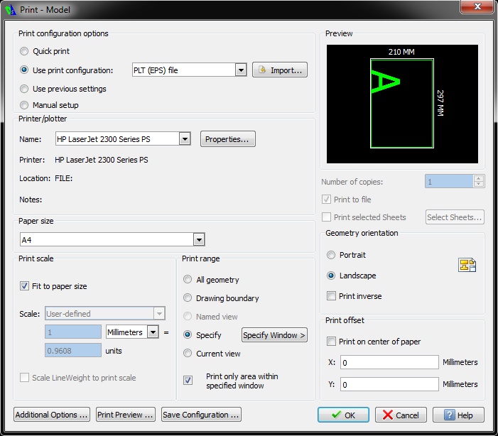 I use Windows 7 Professional 64-bit. I try to print to a file the following drawing: