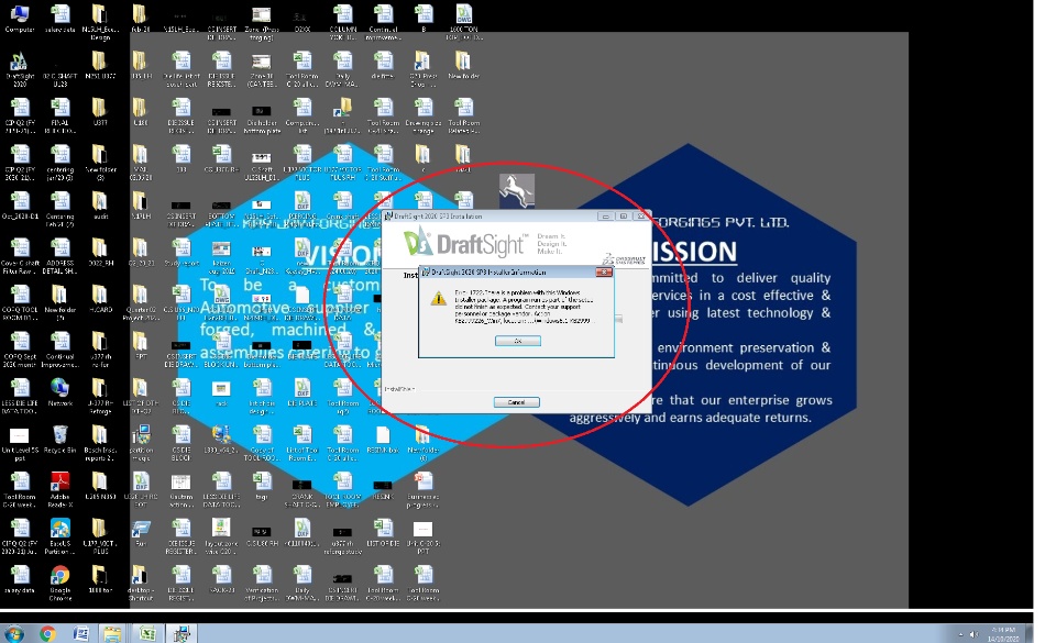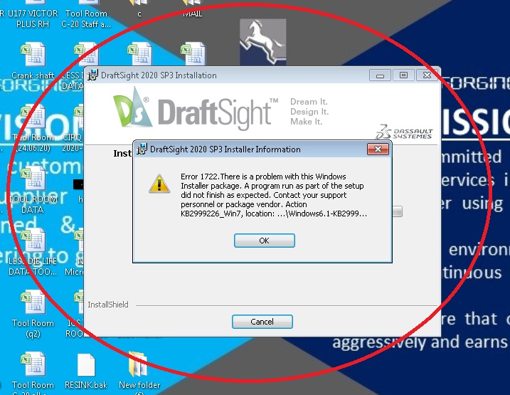 while installation draft sight 2020 SP3 in window 7 32bit error coming KB2999226_Win7, location.