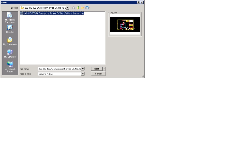 I have provided a screen show of the drawing preview view as well as a screen shot of where I have the drawing open and only see a black screen.