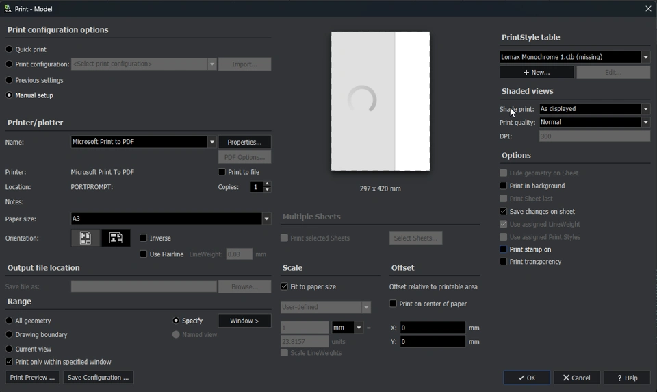 If I close the drawing and shut down Draftsight and then restart the program and open the same drawing, the print command works just fine. It's as if it's been reset.