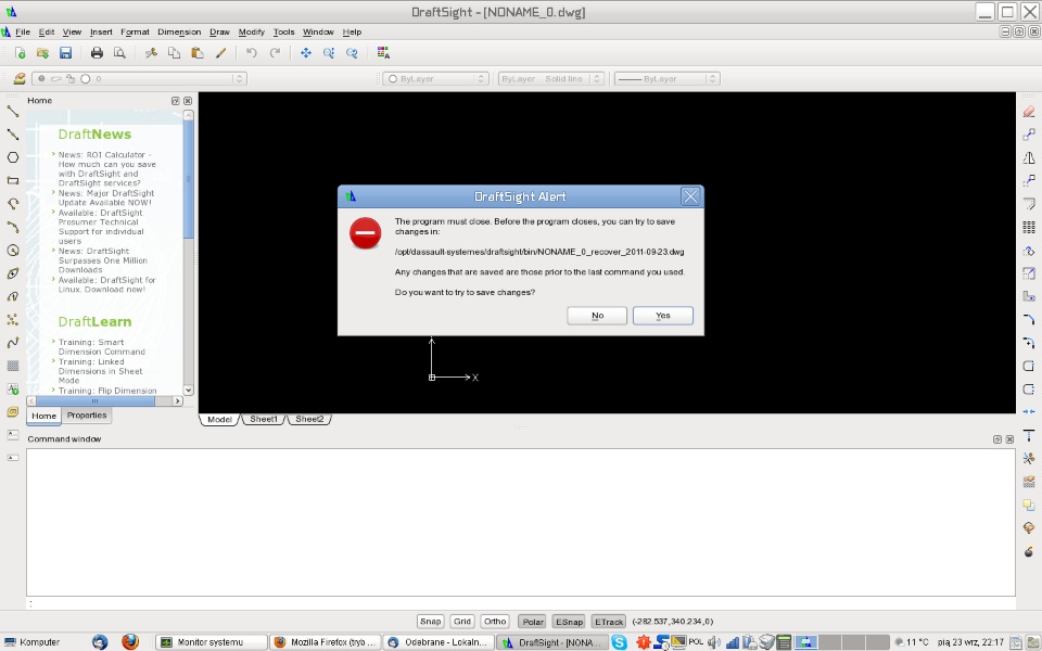 I have newly installed DraftSight on OpenSuse 11.4. Seems to work perfectly but it crashes whenever I try to open or save a file.
