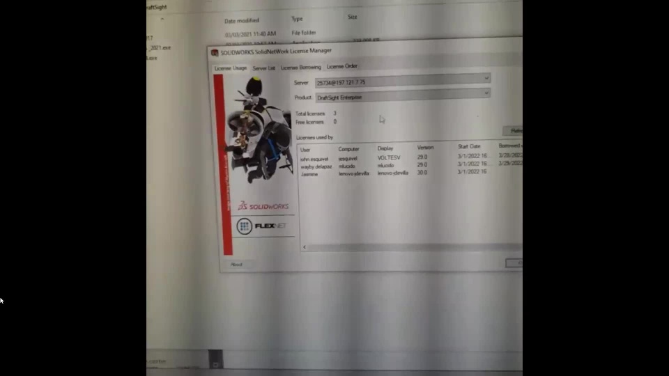 When we return the licenses, the SOLIDNETWORK License Manager Client closes.