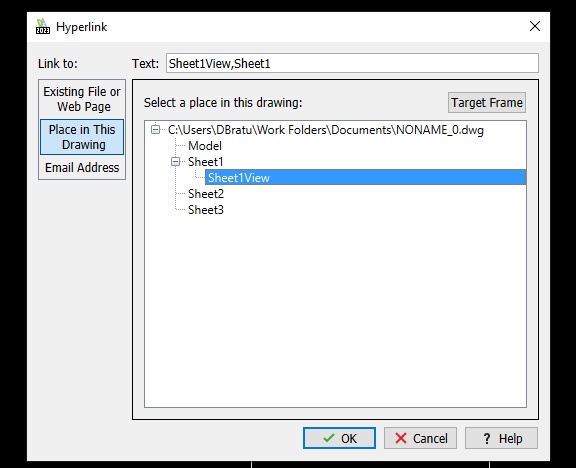 Hey, I am trying to make a simple example of a hyperlink going from the Model page to a Sheet1 page.