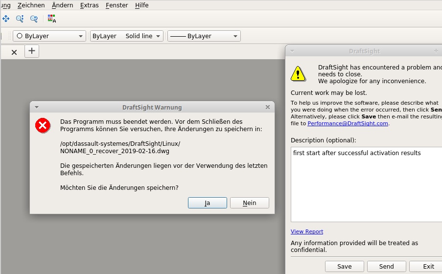 I was able to generate the logging-zip created by draftSight - but don't find any hint.