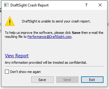 Draftsight unable to open on startup and messge is shown saying draftsight unable to send crash report. Reinstalled software and entered the key. Still same error.