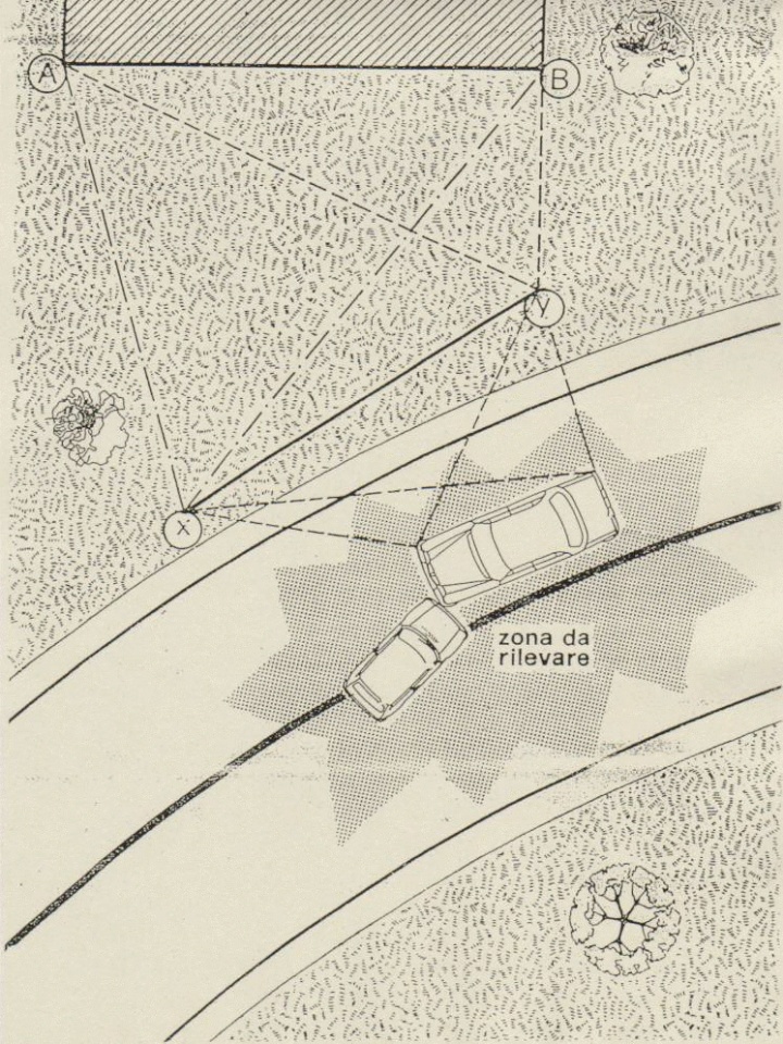 I need to draw the result of a field survey made with the triangulation mode. How can i fix the points on the grid using my measures? I need to locate the intersection between the measures from A point and the corners of the objects , some cars, and the measures from B point and the corners of the same objects. Like the image..