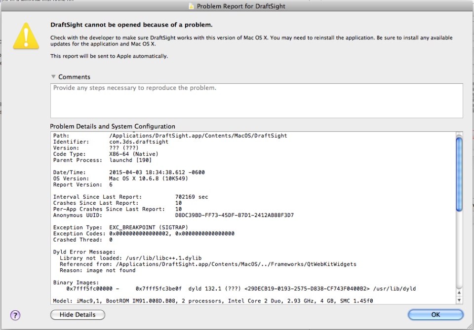 Draftsight cannot be opened because of a problem (thanks captain obvious)