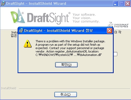 when I Install draftsight 32 bit, this error message is suddenly appears at the end of install progress.