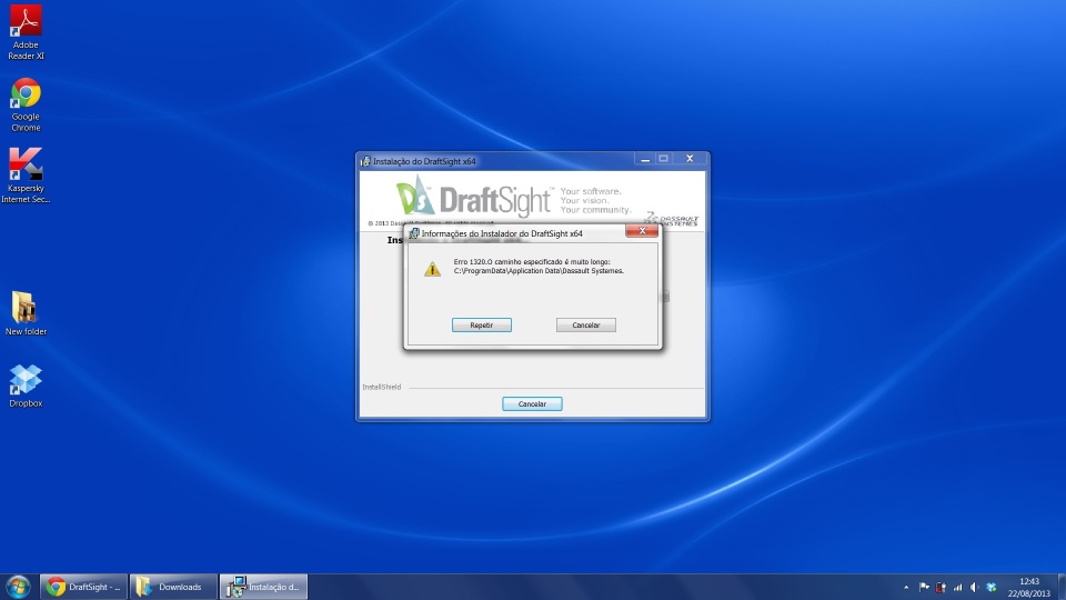 I am not able to install this software to test, because during installation it create this folder "C:\\ProgramData\\Application Data\\Dassault Systemes" my windows is 7 64bits it doesn't allow space in name of folders. what can i do to install your DraftSight? thank you