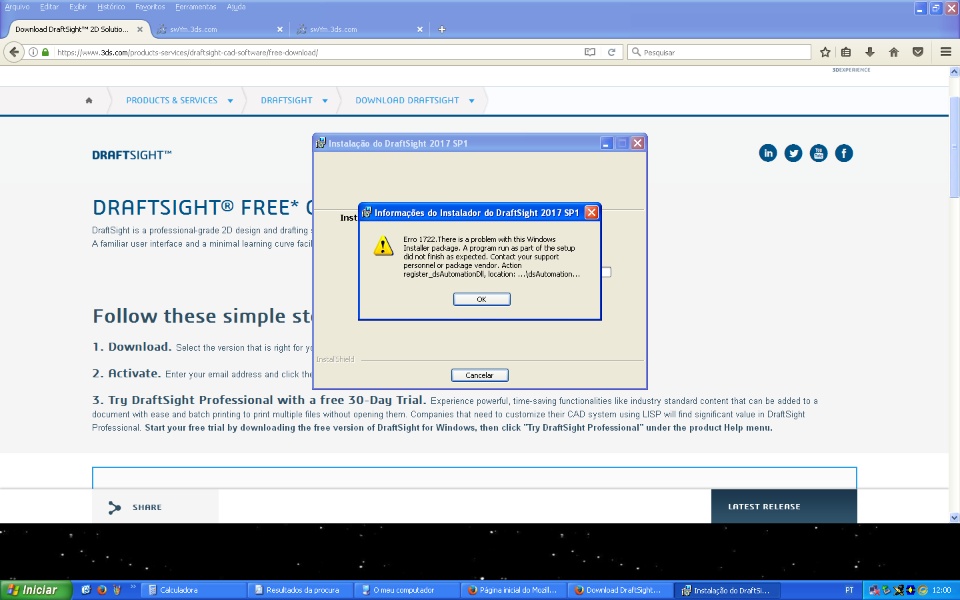 I trying to install Draftsight 2017 SP1 in a computer with Windows XP but I get the error 1722. Can you please help me? Many thanks in advance.