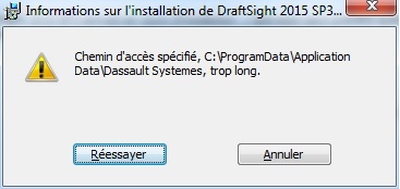 I'm trying to install Draftsight 2015 (for Win7 64-bit) sp3, english version.