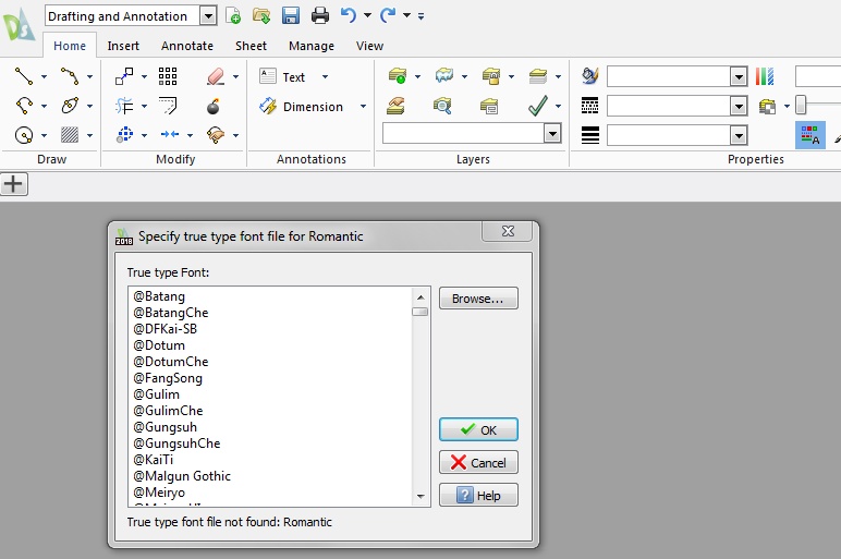 Hi, whever I start up Drafsight (free) it always asks me for about 3 different true type fonts (Romantic, Swiss721 BlkCnBT, Swis721 BT) and gives me a list of fonts to pick from. Any idea on where the settings are to permanently change this to fonts that I have installed on my system?