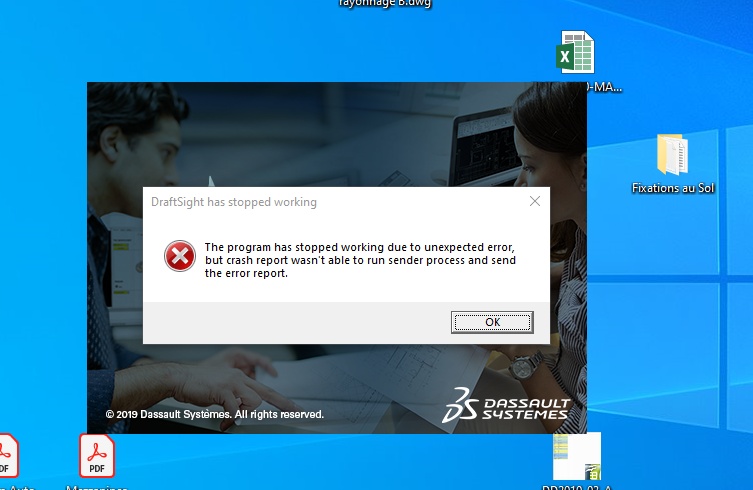Hello, I have an issue with 2 users, when they are launching DraftSight 2020 they have an error. I will join a screenshot. I already tried to reinstall the software, update drivers. Anyone has an idea ?