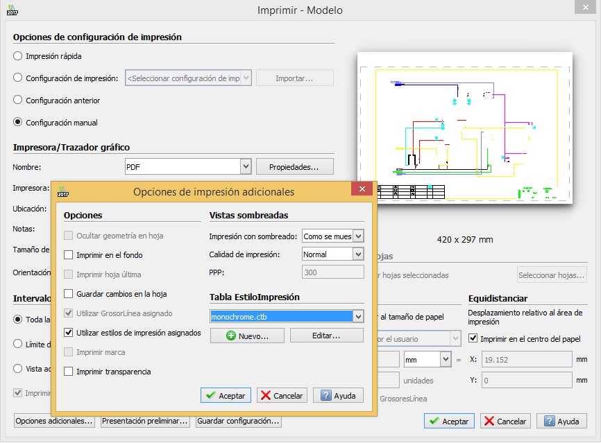 I'm trying to find out how to print a dwg file with black lines, I have already done it before configuring the print options to "monochrome.ctb", but I have a file which doesn't change with this option but the lines are still in different colors, does anyone have any idea why this happens?