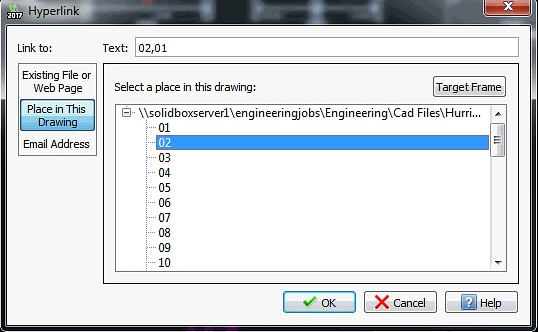 I can't seem to get the hyperlink function to work when selecting "Place in this drawing". When I select "Place in this Drawing", the RH navigation window shows all sheet names that appear in the dwg file...I then select the sheet name and hit "OK". However, when I try activating the Hyperlink I get an error "Hyperlink destination cannot be found."