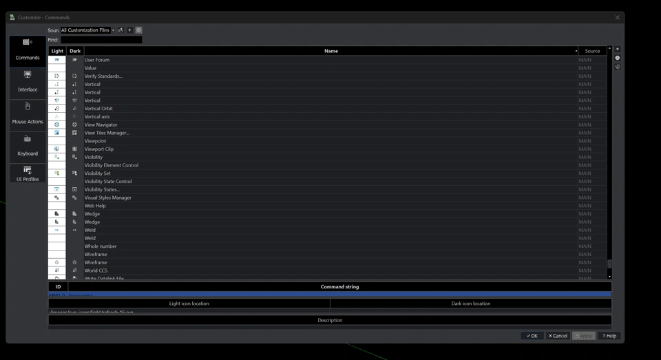 I'd like to create a tool. I open the Customize Commands window. But the lower part of the window is not visible, nor can I stretch it open. If I "Add" a command it appears in the list. but the Command String entry line is covered. When I stretch the window down, just the list of commands grows; I cannot see the Command String entry. There does not appear to be any other stretch points on the window; just the very bottom and very top.
