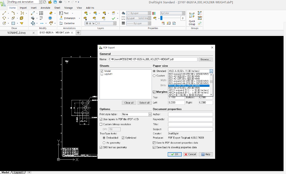 I am using it as a'Export PDF' function to convert CAD files to pdf in Draftsight2019.