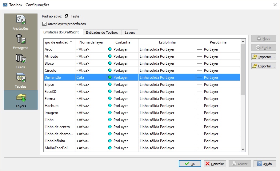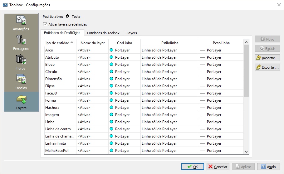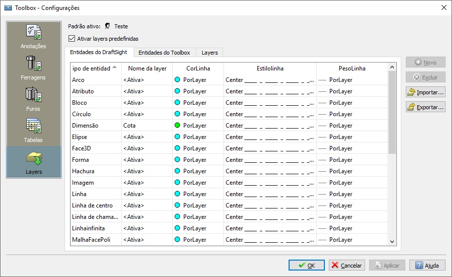 Another related issue. When setting the Application Language to Portuguese, whatever change I make to the Toolbox Settings, Layers page, results on the LineStyles of ALL entities set to CENTER . Everything I draw with Enable predefined layering active is then drawn with CENTER LineStyle.